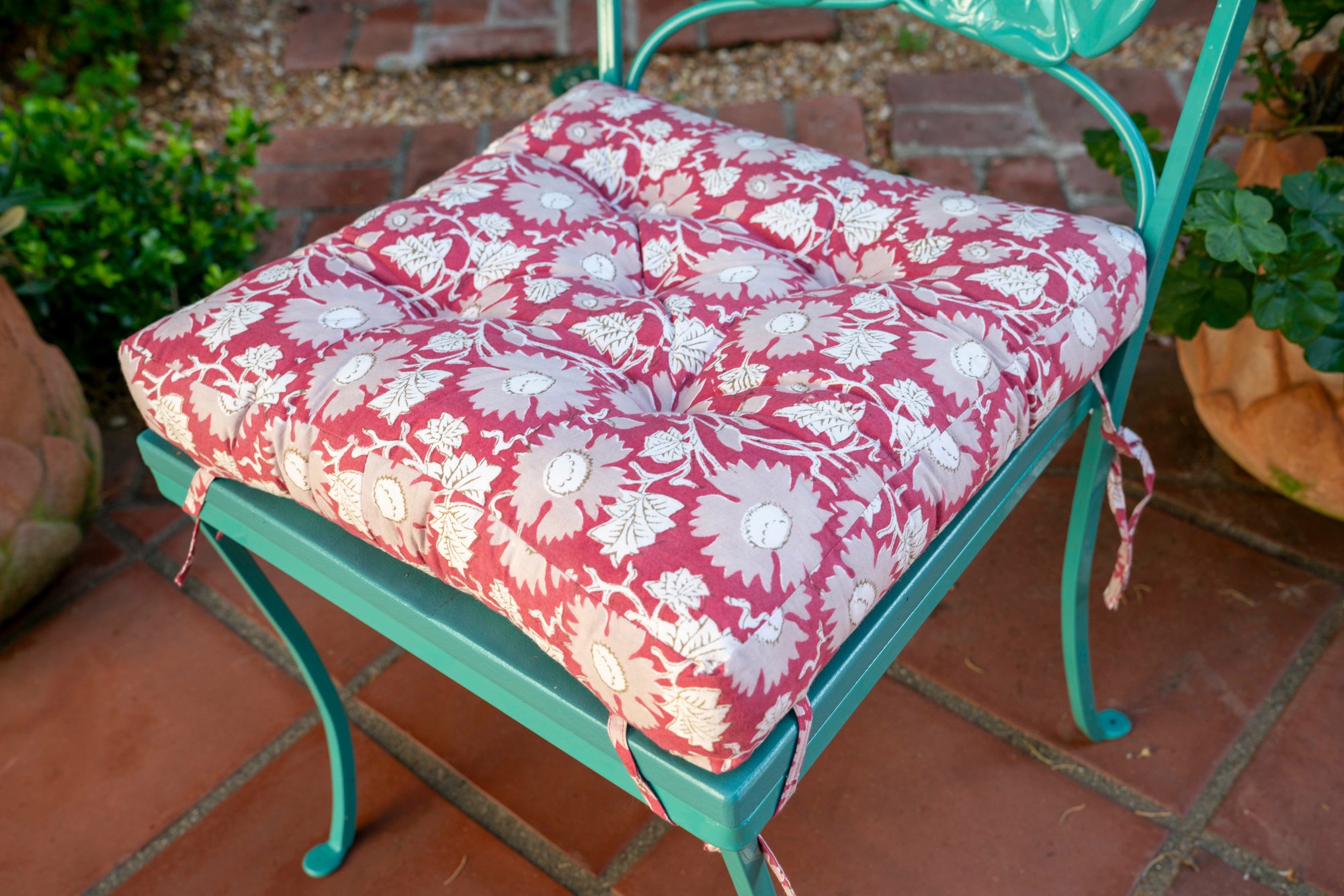 16" Tufted Cotton Chair Cushion Spanish Floral