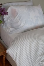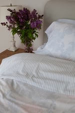 Our duvets are crafted with meticulous attention to detail, featuring two layers of sumptuously soft voile cotton. The use of voile cotton ensures a luxurious feel that is both lightweight and breathable, perfect for a comfortable night's sleep. Adding to their elegance and functionality, these duvets are adorned with shell button closures, providing a touch of sophistication while securely enclosing the duvet insert. With Kerry's duvets, indulgence meets practicality, promising a cozy and stylish addition to any bedroom decor.