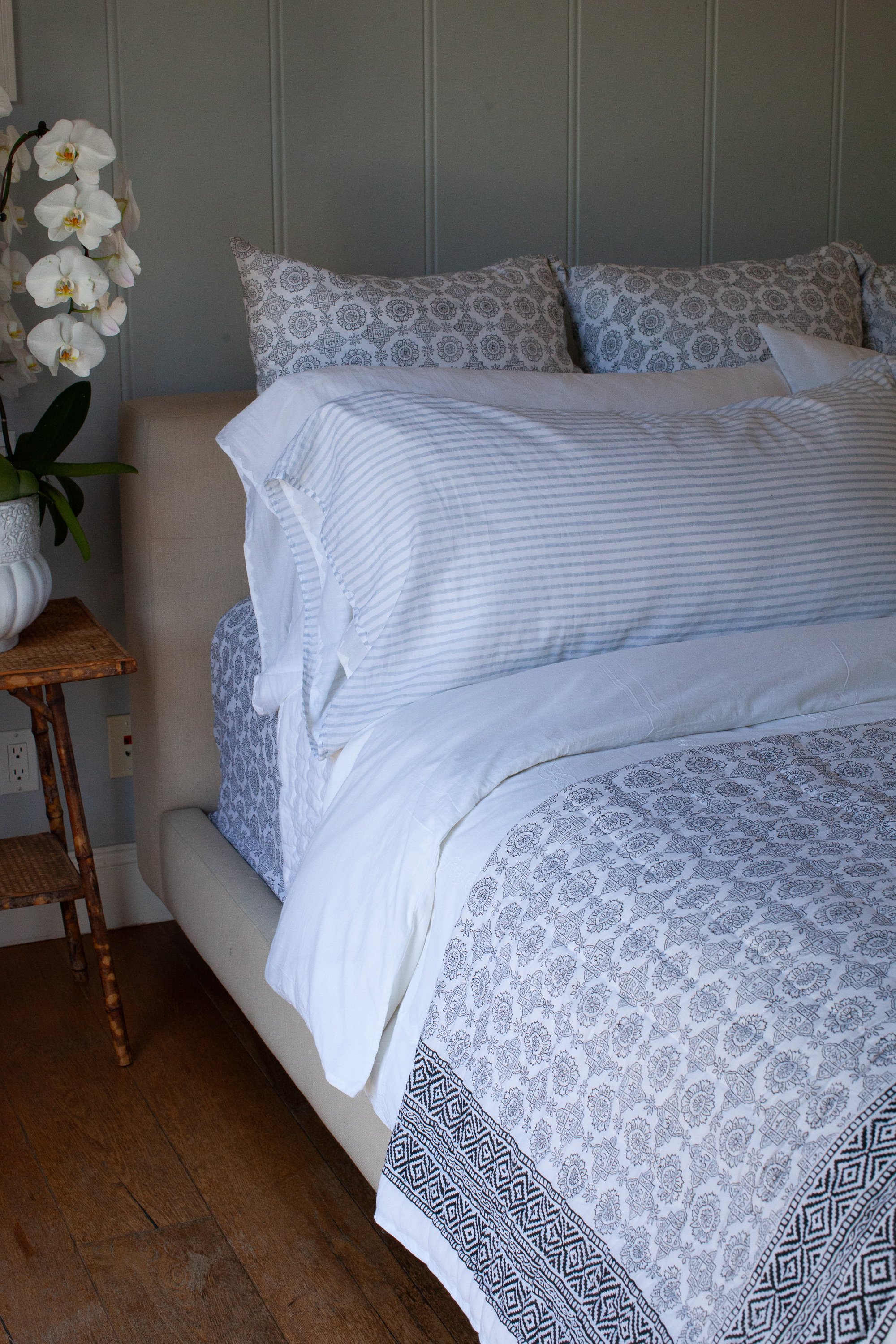 Kerry's quilts include hand-quilted cotton batting, luxe cotton and our softest hem. We love our solids layered in the bed as top sheets. So snuggly soft.