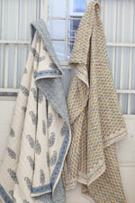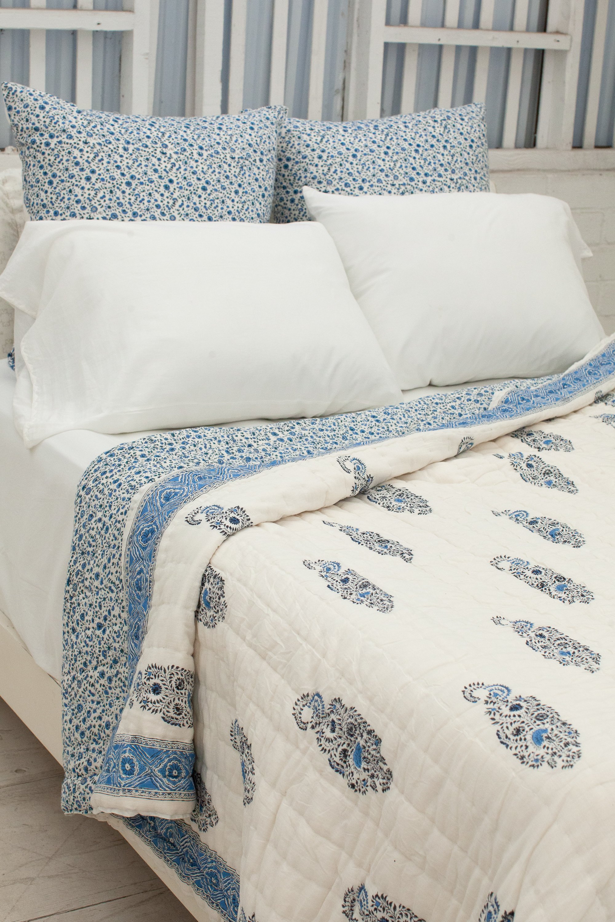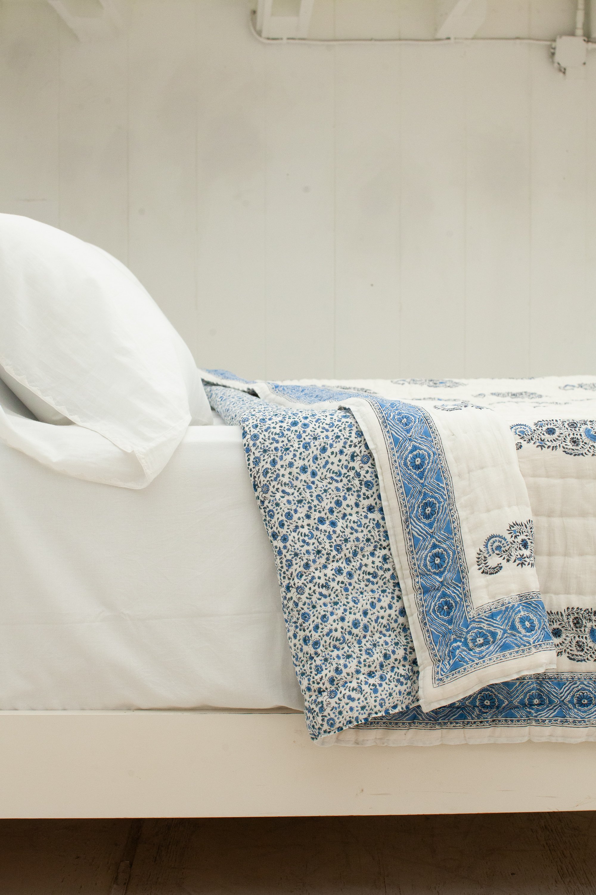 Kerry's quilts include hand-quilted cotton batting, luxe cotton and our softest hem. We love our solids layered in the bed as top sheets. So snuggly soft.
