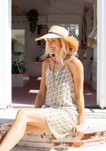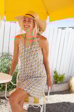 Easy silhouette with adjustable spaghetti straps. hitting mid thigh.