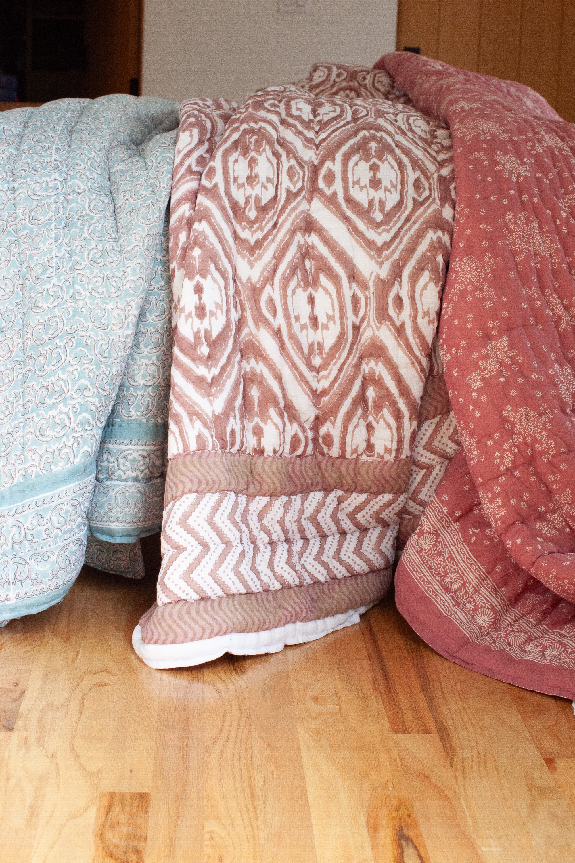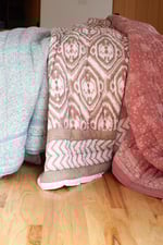 Kerry's quilts include hand-quilted cotton batting, luxe cotton and our softest hem.  We love our solids layered in the bed as top sheets. So snuggly soft.