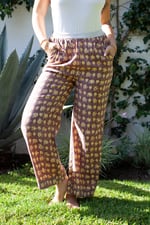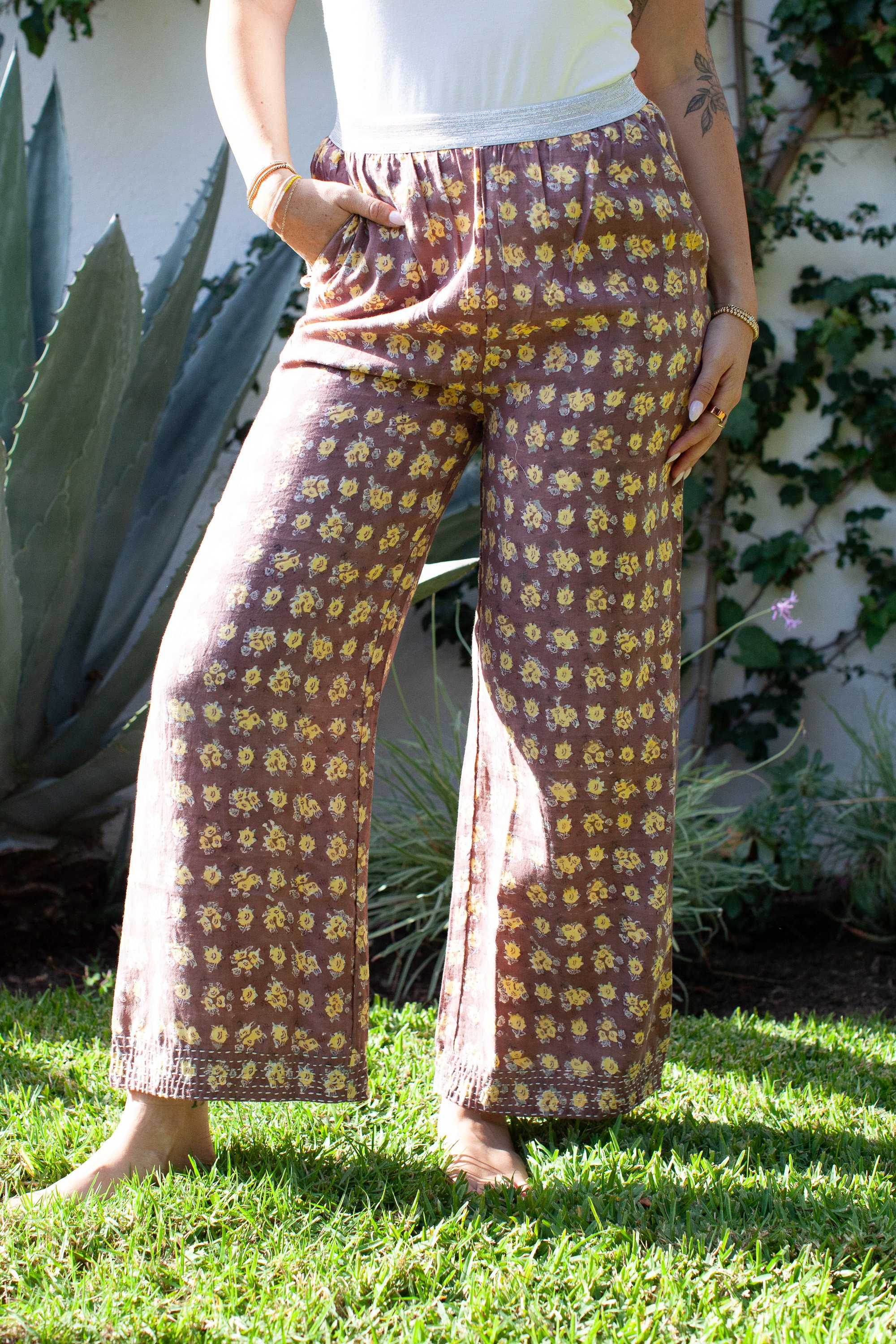 An easy flowing leg and silver elastic waistline make this our classic every day, every night pant. Pockets