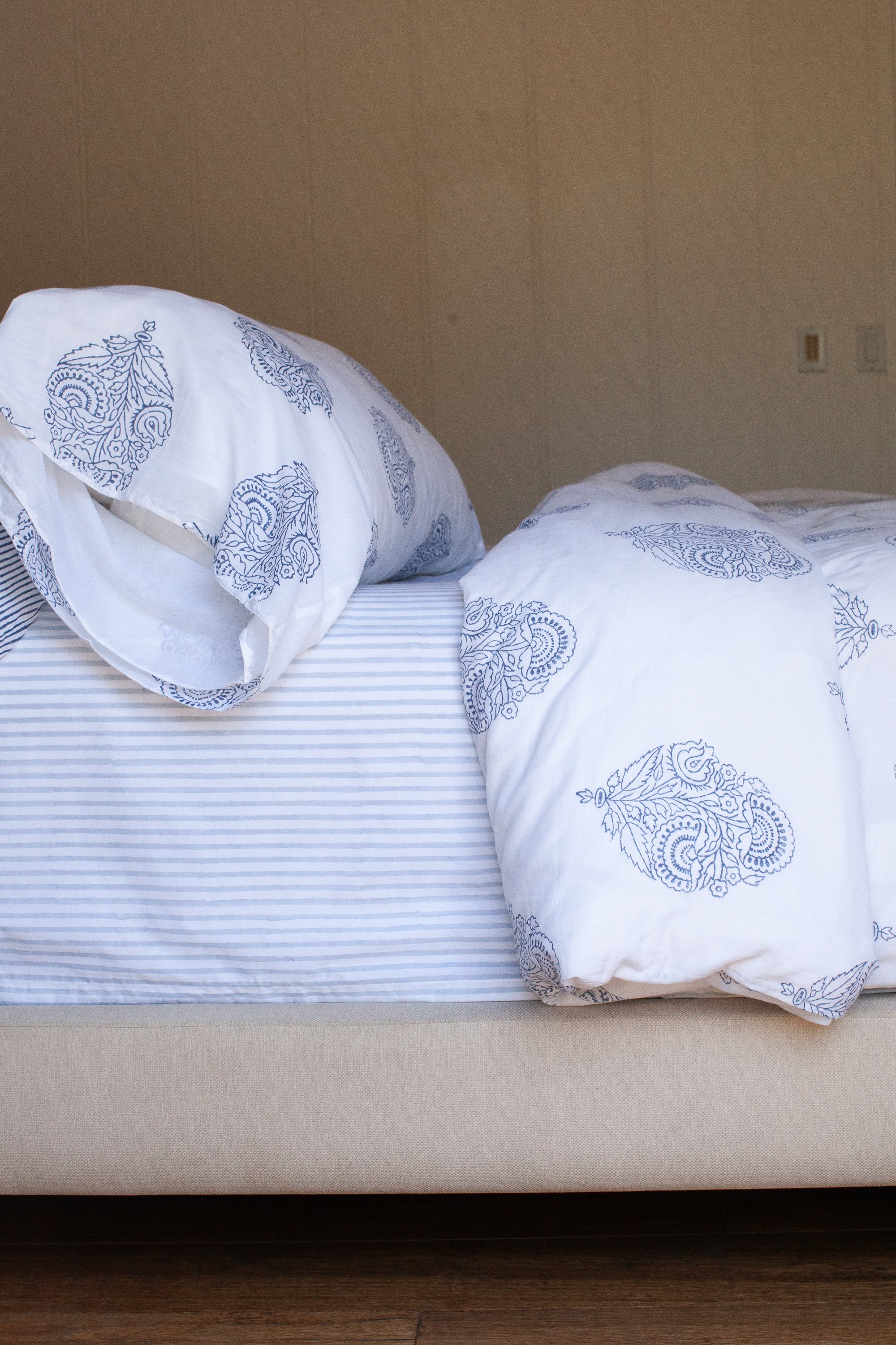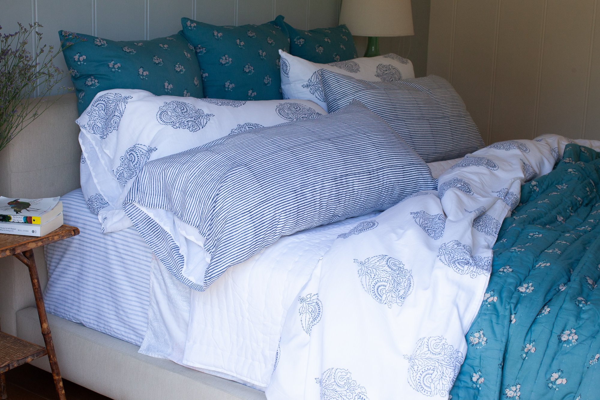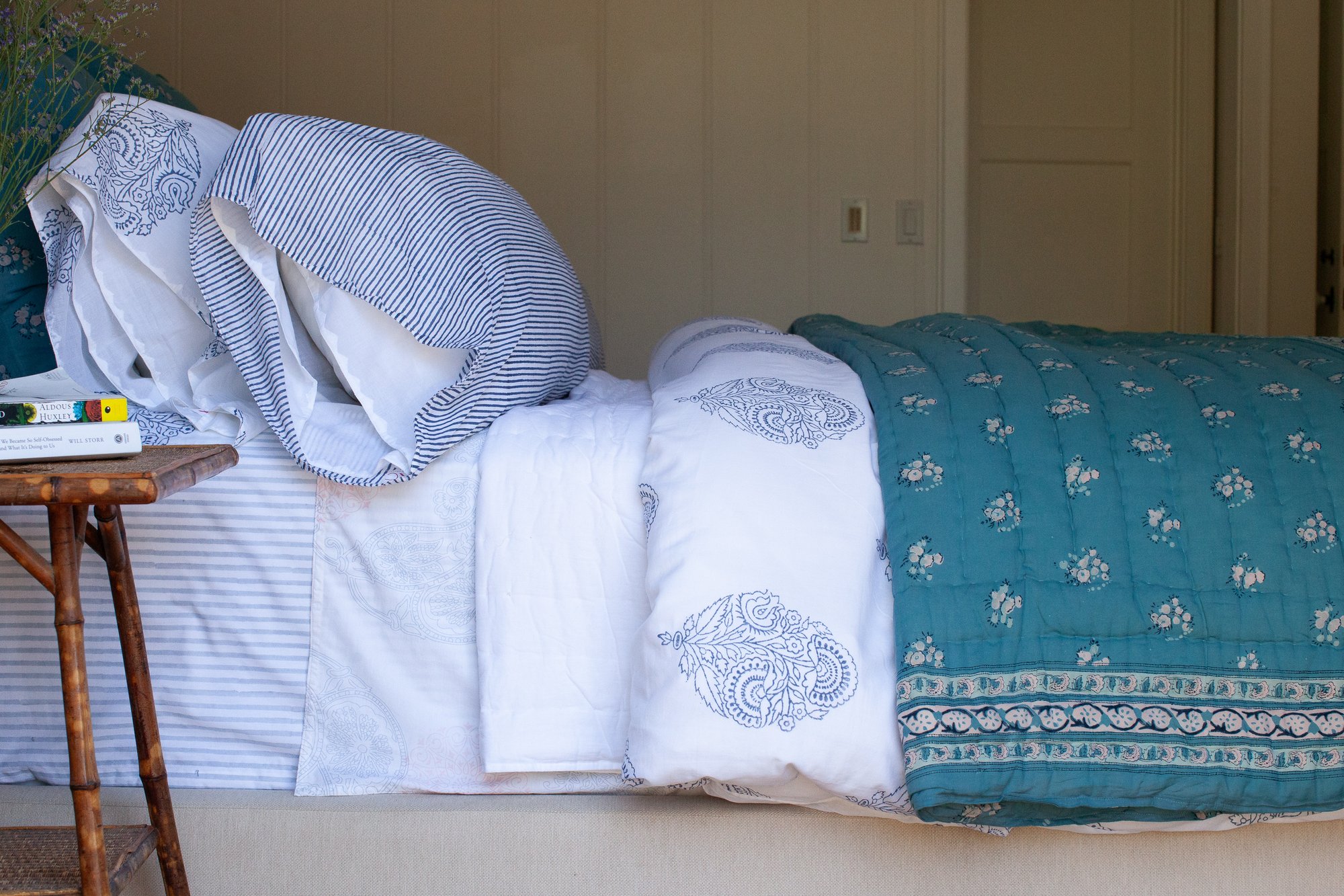Our duvets are crafted with meticulous attention to detail, featuring two layers of sumptuously soft voile cotton. The use of voile cotton ensures a luxurious feel that is both lightweight and breathable, perfect for a comfortable night's sleep. Adding to their elegance and functionality, these duvets are adorned with shell button closures, providing a touch of sophistication while securely enclosing the duvet insert. With Kerry's duvets, indulgence meets practicality, promising a cozy and stylish addition to any bedroom decor.