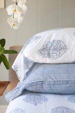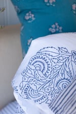 Kerry's Pillowcases offer the epitome of luxury with their highest-quality, soft Indian cotton. Each pillowcase is meticulously crafted with hand applique trim, adding a touch of sophistication and completing the distinctive Kerry Cassill aesthetic. With the ability to mix and match pillowcases from different seasons, customers have the flexibility to create their own unique combinations. Please note that all prices mentioned are for individual pillowcases, allowing customers the freedom to curate their bedding ensemble to suit their personal style and preferences.