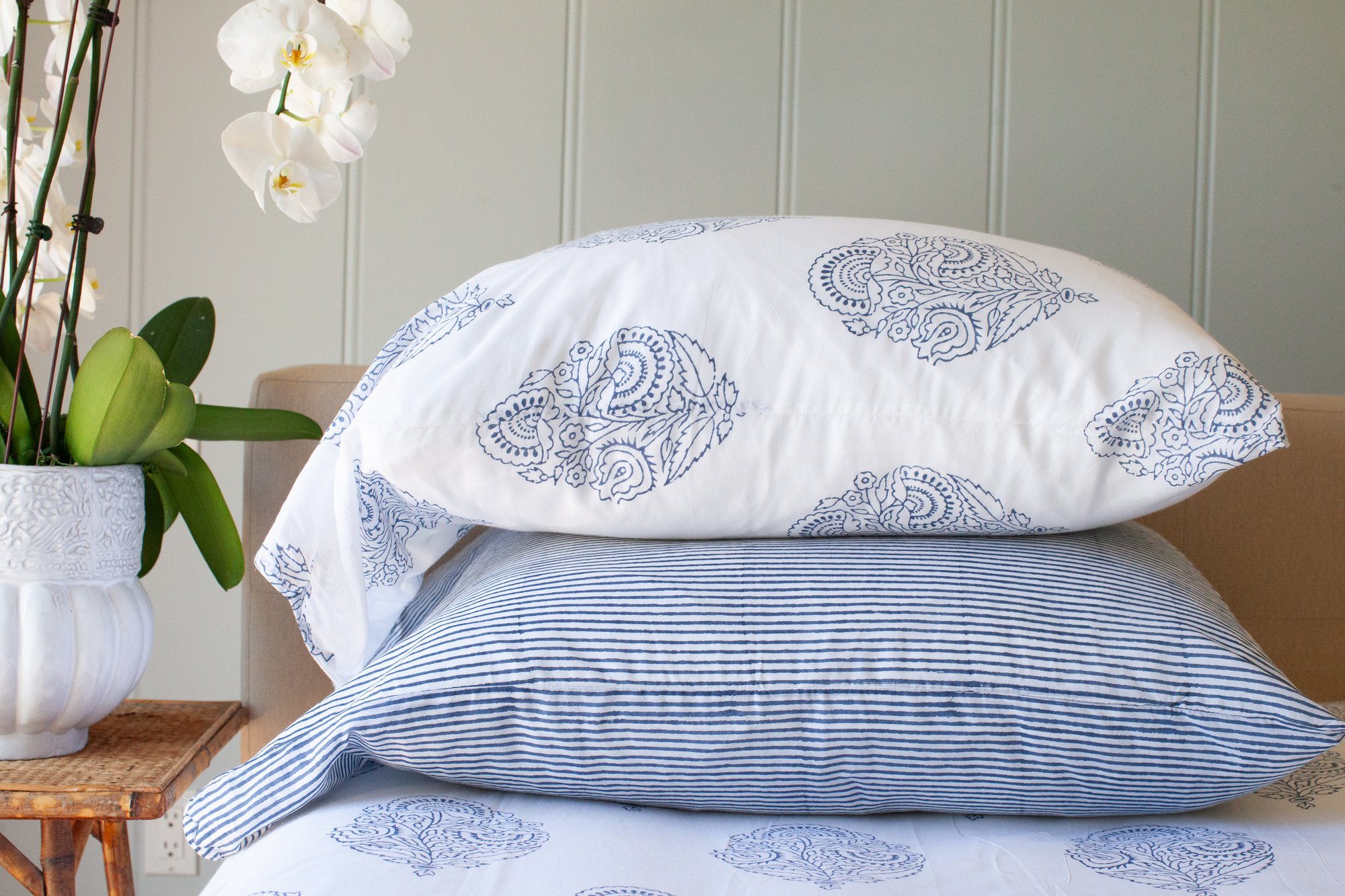 Kerry's Pillowcases offer the epitome of luxury with their highest-quality, soft Indian cotton. Each pillowcase is meticulously crafted with hand applique trim, adding a touch of sophistication and completing the distinctive Kerry Cassill aesthetic. With the ability to mix and match pillowcases from different seasons, customers have the flexibility to create their own unique combinations. Please note that all prices mentioned are for individual pillowcases, allowing customers the freedom to curate their bedding ensemble to suit their personal style and preferences.