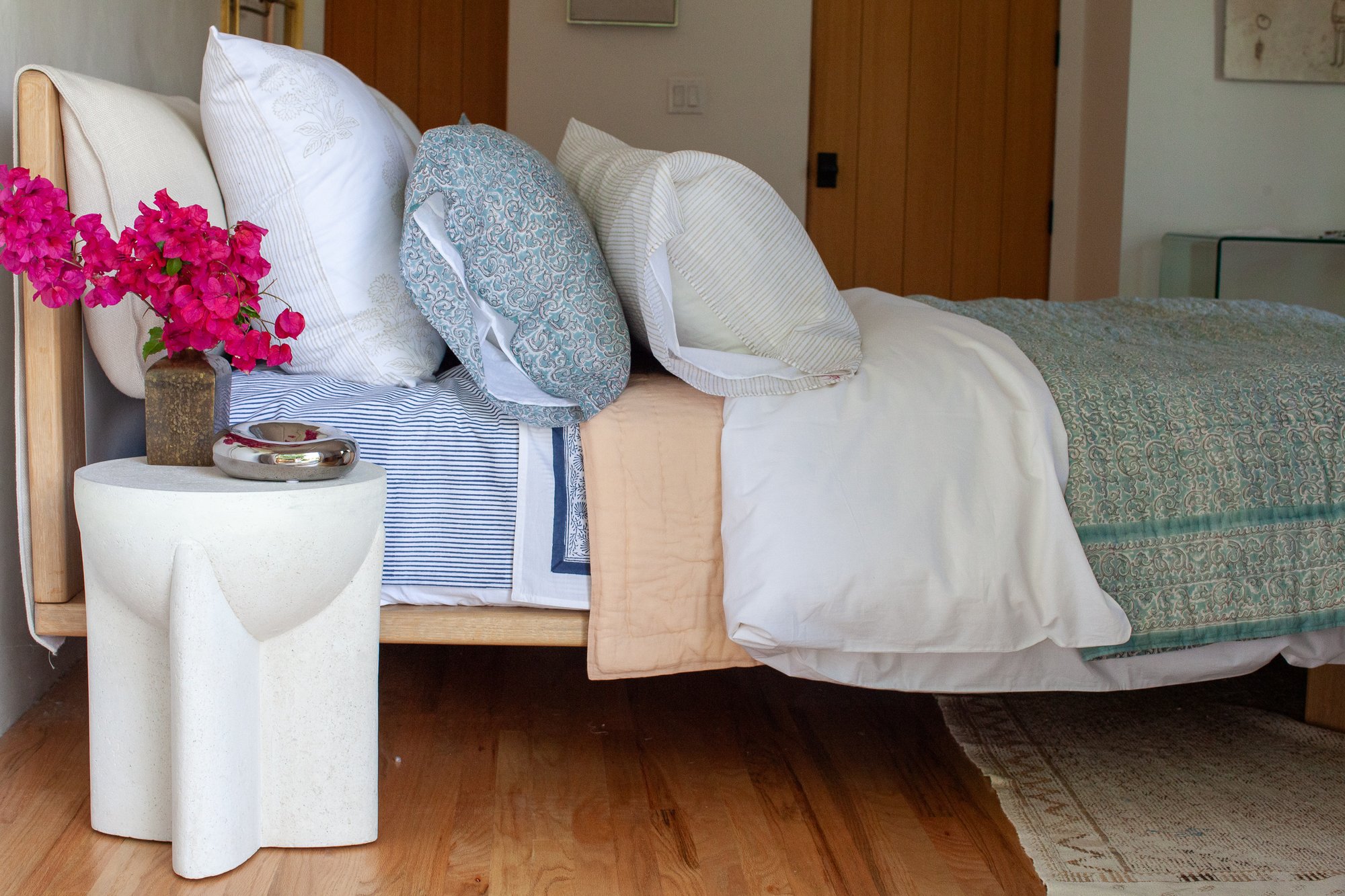 Kerry's fitted sheets are 100% cotton and have adjustable ties to secure the perfect fit. These are available in either King or Queen size.