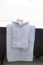 Introducing the Kerry Cassill Terry + Voile Towel, where the luxurious softness of Kerry's bedding now extends to your bath experience. This towel features a combination of solid white terry on one side and the signature Kerry Cassill print on the other, offering both plush comfort and distinctive style. The hand gudri stitching adds a touch of Indian Bohemian charm, elevating the towel to a unique piece of artistry.