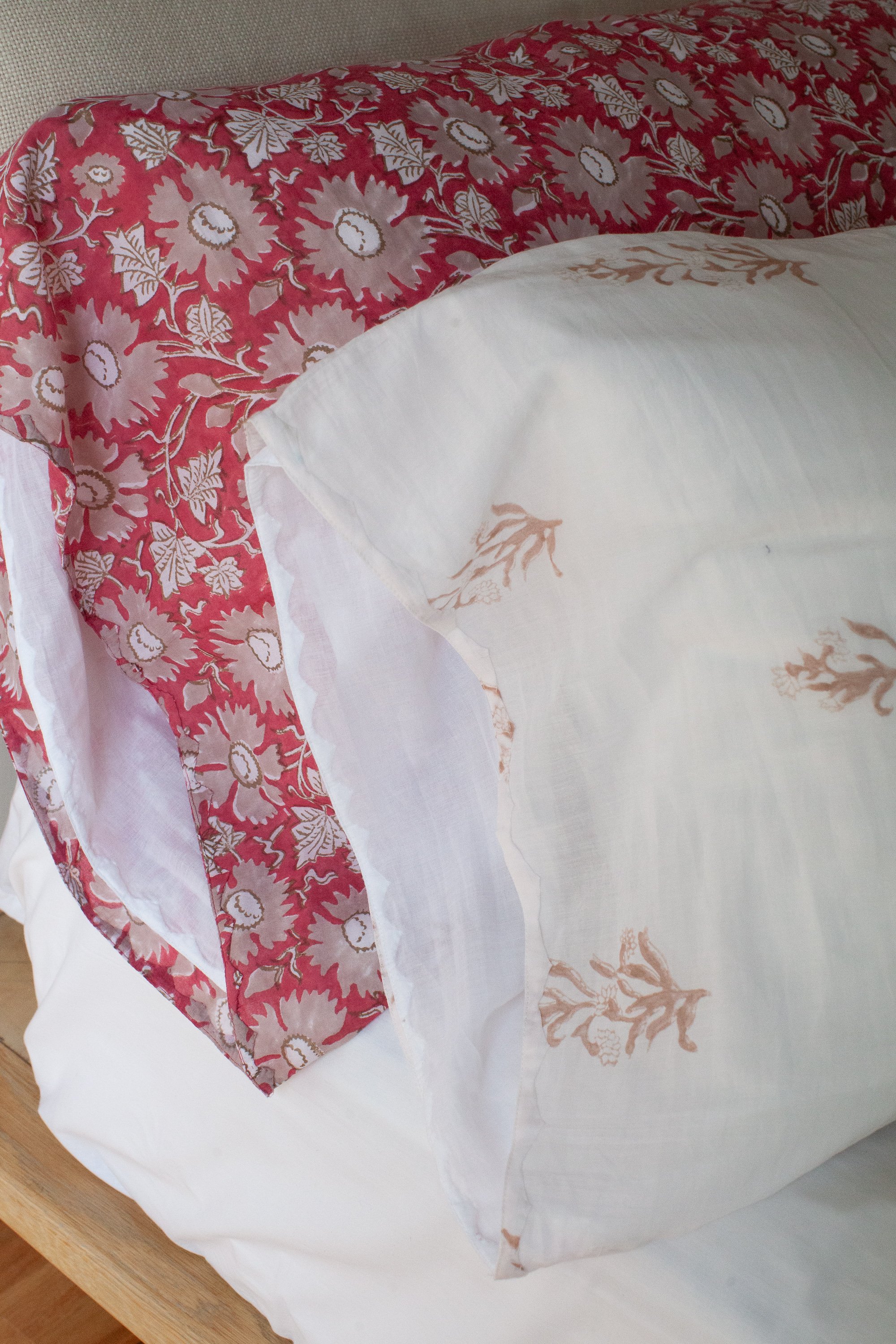Kerry's Pillowcases offer the epitome of luxury with their highest-quality, soft Indian cotton. Each pillowcase is meticulously crafted with hand applique trim, adding a touch of sophistication and completing the distinctive Kerry Cassill aesthetic. With the ability to mix and match pillowcases from different seasons, customers have the flexibility to create their own unique combinations. Please note that all prices mentioned are for individual pillowcases, allowing customers the freedom to curate their bedding ensemble to suit their personal style and preferences.