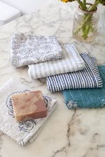 Available for purchase as a set or individually, customers have the flexibility to mix and match, allowing for personalized combinations that enhance the elegance of any bathroom. Indulge in the ultimate bath luxury with Kerry Cassill Terry + Voile Towels, where comfort meets sophistication in every stitch.