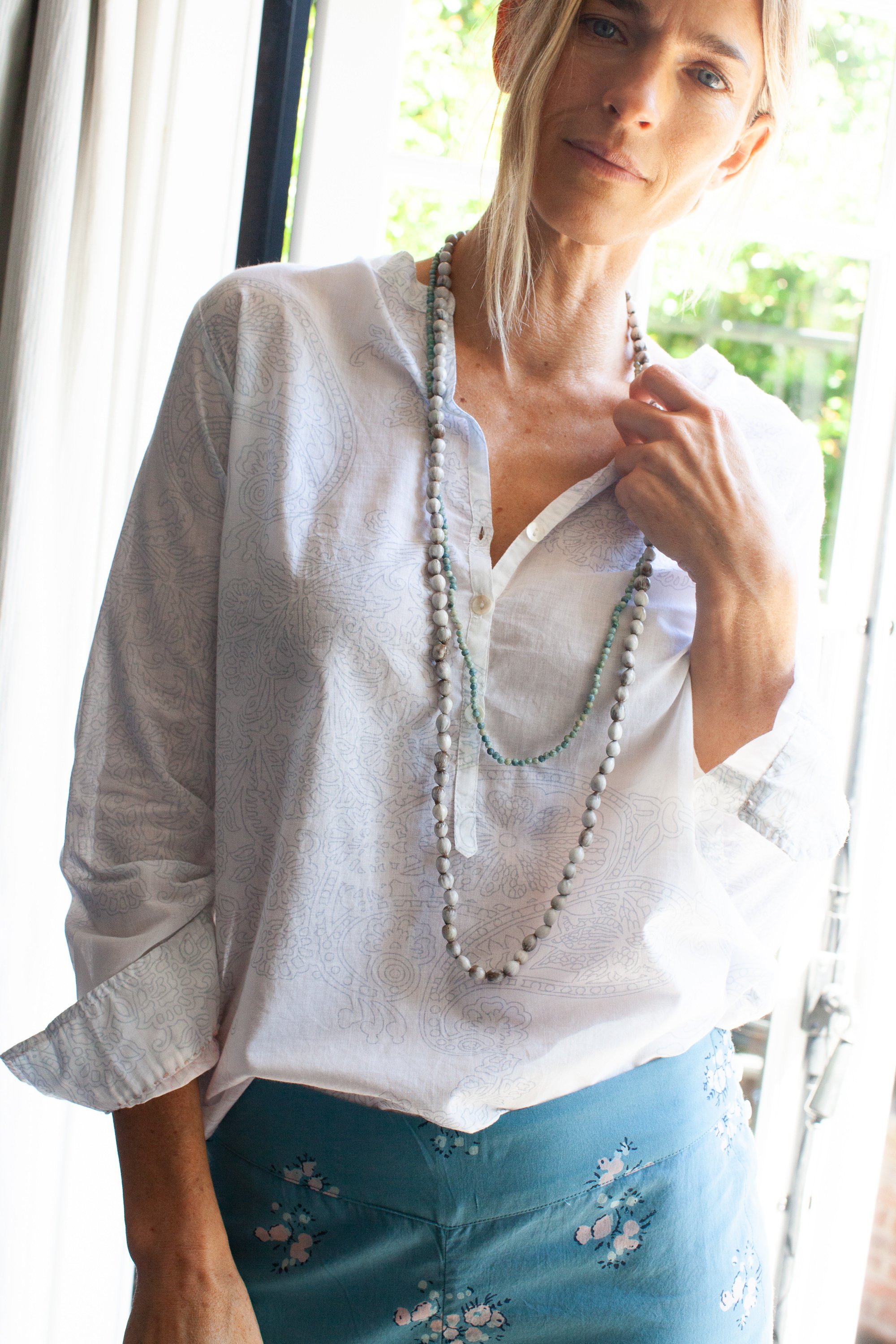 Classic pull over style with henley button neckline. Gudri stitching on the back yoke. Fits true to size.