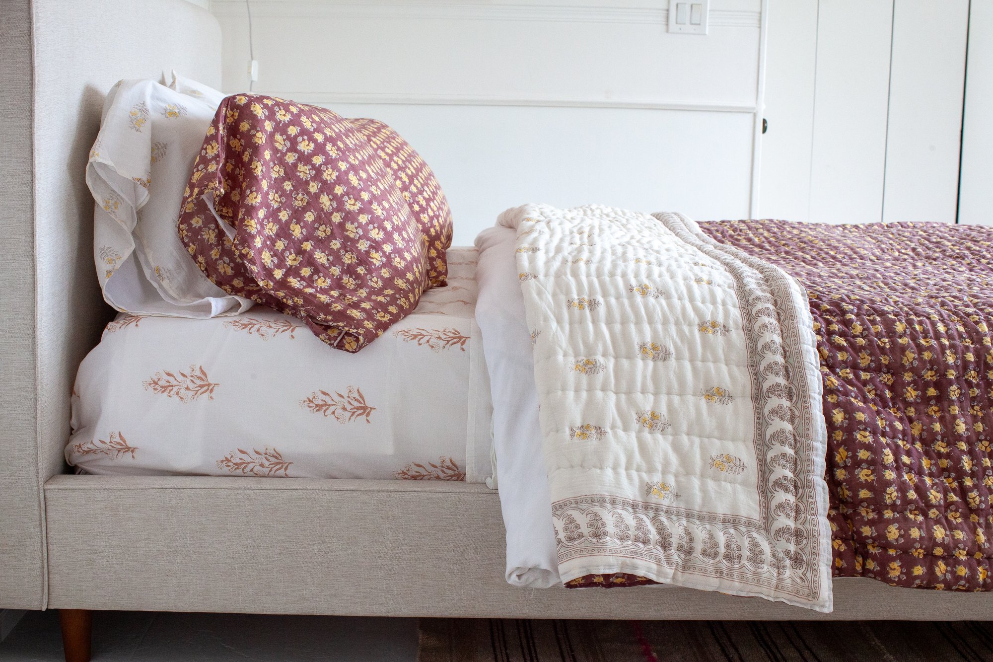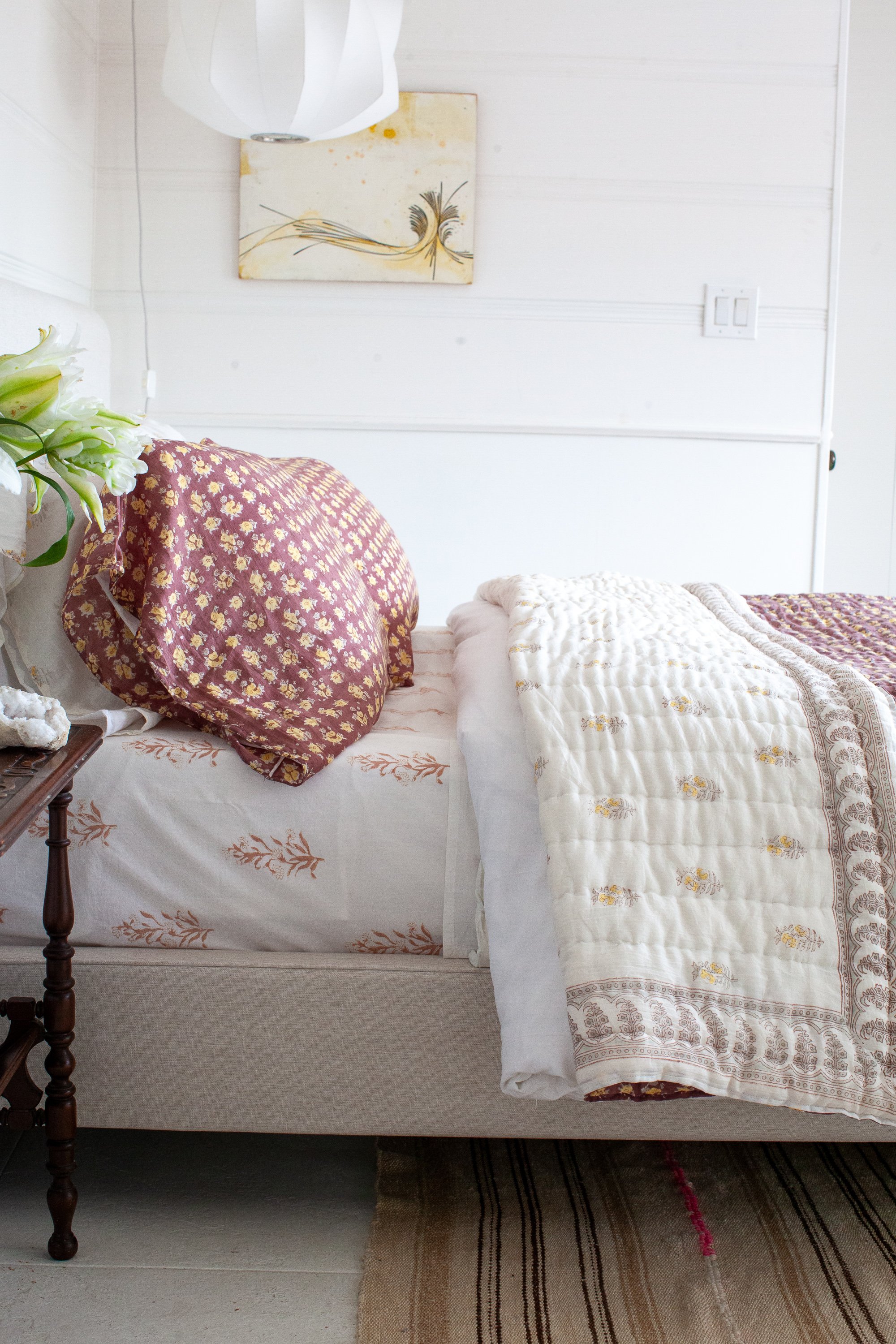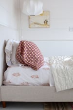 Kerry's quilts include hand-quilted cotton batting, luxe cotton and our softest hem. We love our solids layered in the bed as top sheets. So snuggly soft.
