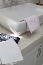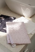 Available for purchase as a set or individually, customers have the flexibility to mix and match, allowing for personalized combinations that enhance the elegance of any bathroom. Indulge in the ultimate bath luxury with Kerry Cassill Terry + Voile Towels, where comfort meets sophistication in every stitch.