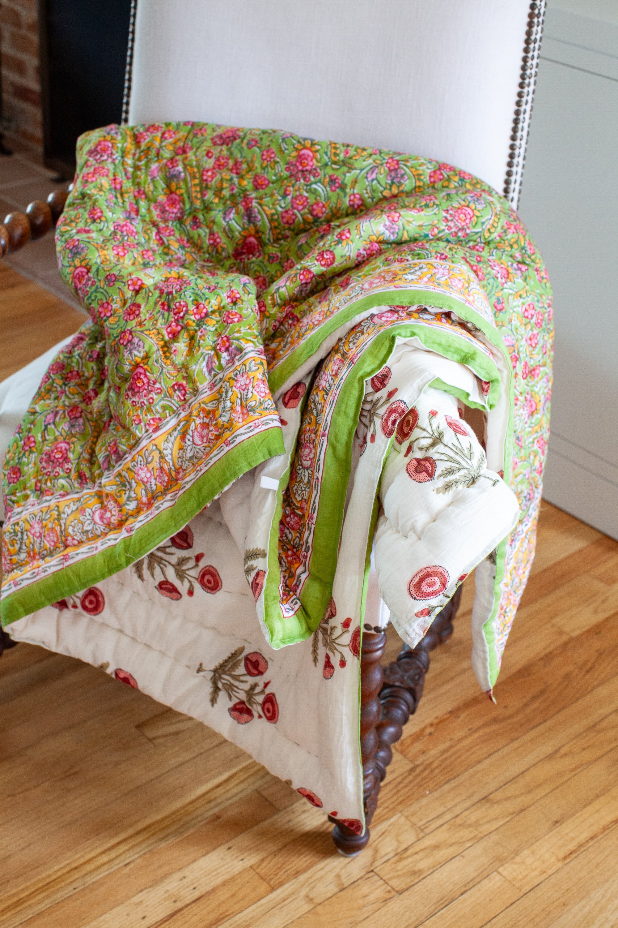 Kerry's quilts include hand-quilted cotton batting, luxe cotton and our softest hem.  We love our solids layered in the bed as top sheets. So snuggly soft.