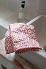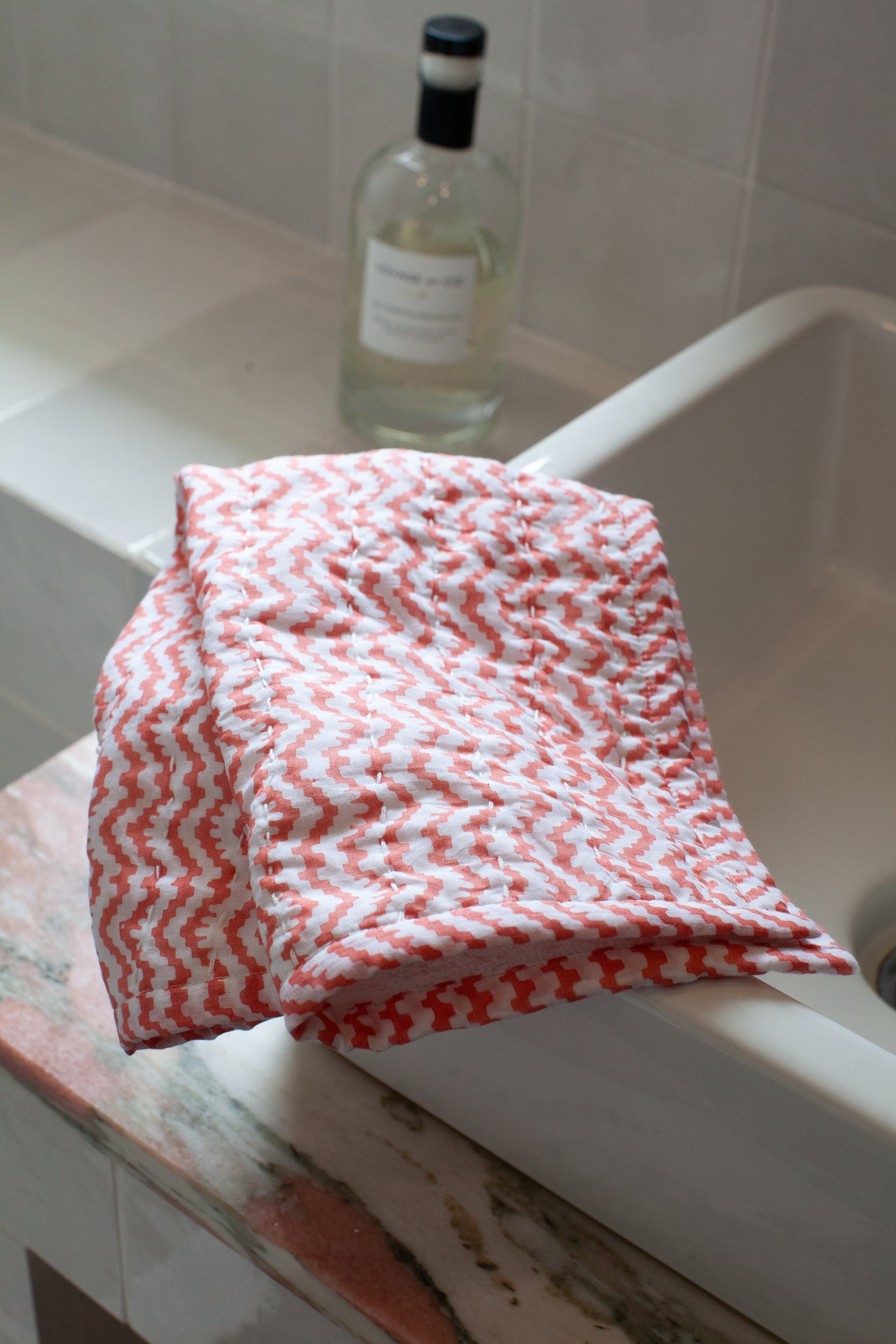 Introducing the Kerry Cassill Terry + Voile Towel, where the luxurious softness of Kerry's bedding now extends to your bath experience. This towel features a combination of solid white terry on one side and the signature Kerry Cassill print on the other, offering both plush comfort and distinctive style. The hand gudri stitching adds a touch of Indian Bohemian charm, elevating the towel to a unique piece of artistry.