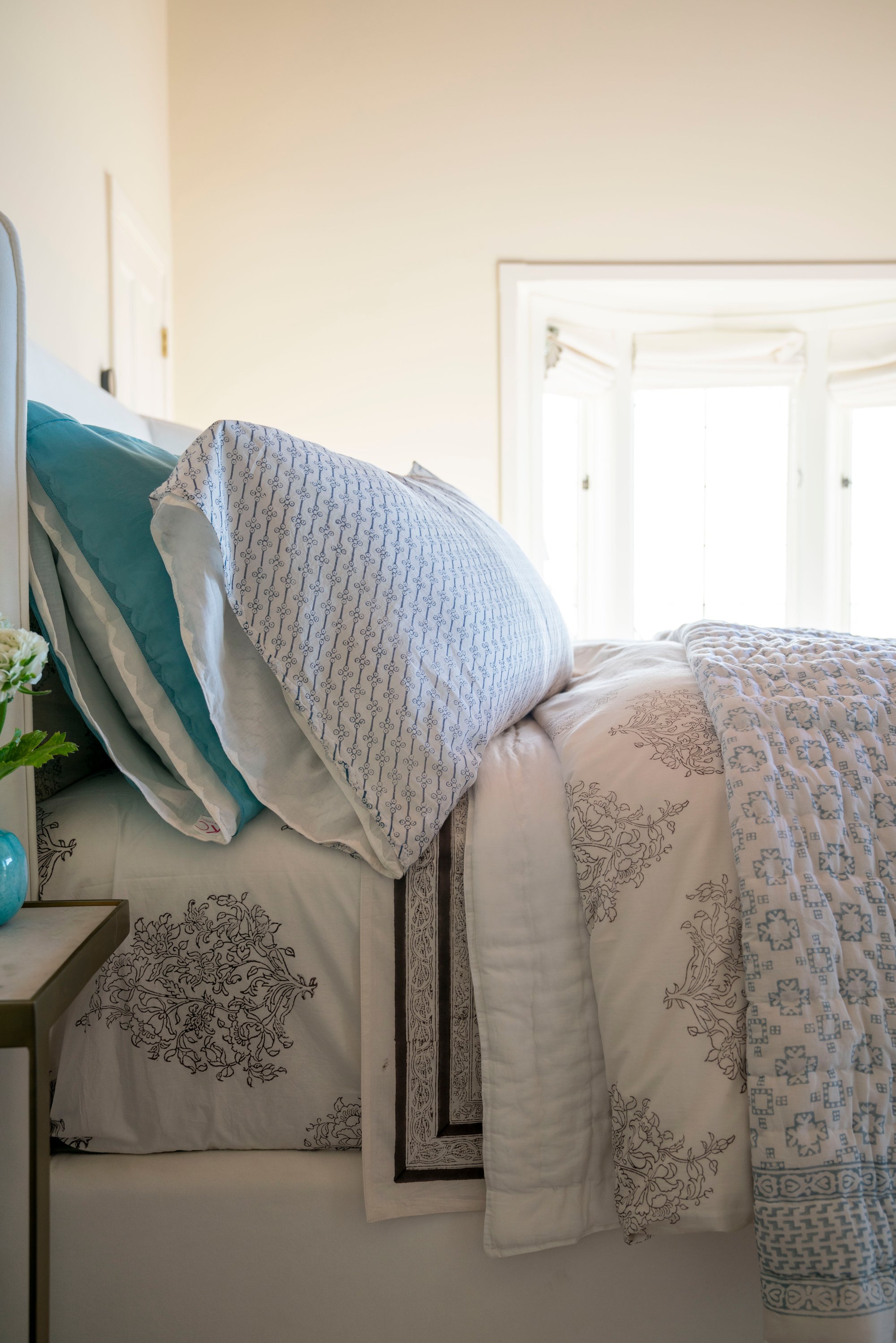 Kerry's Pillowcases offer the epitome of luxury with their highest-quality, soft Indian cotton. Each pillowcase is meticulously crafted with hand applique trim, adding a touch of sophistication and completing the distinctive Kerry Cassill aesthetic. With the ability to mix and match pillowcases from different seasons, customers have the flexibility to create their own unique combinations. Please note that all prices mentioned are for individual pillowcases, allowing customers the freedom to curate their bedding ensemble to suit their personal style and preferences.