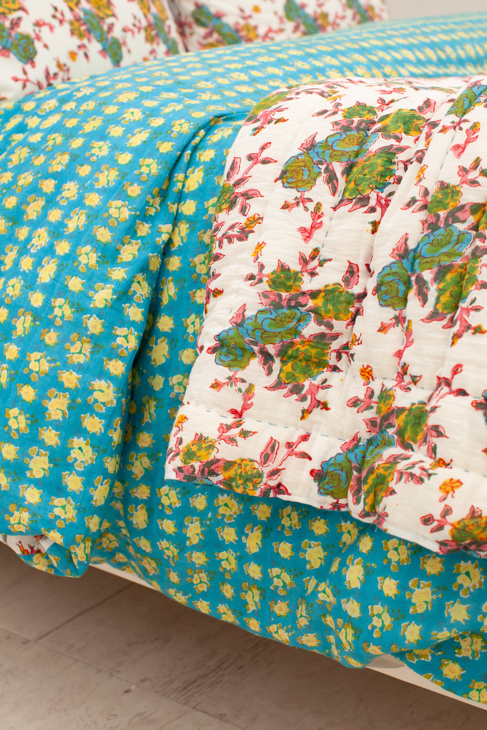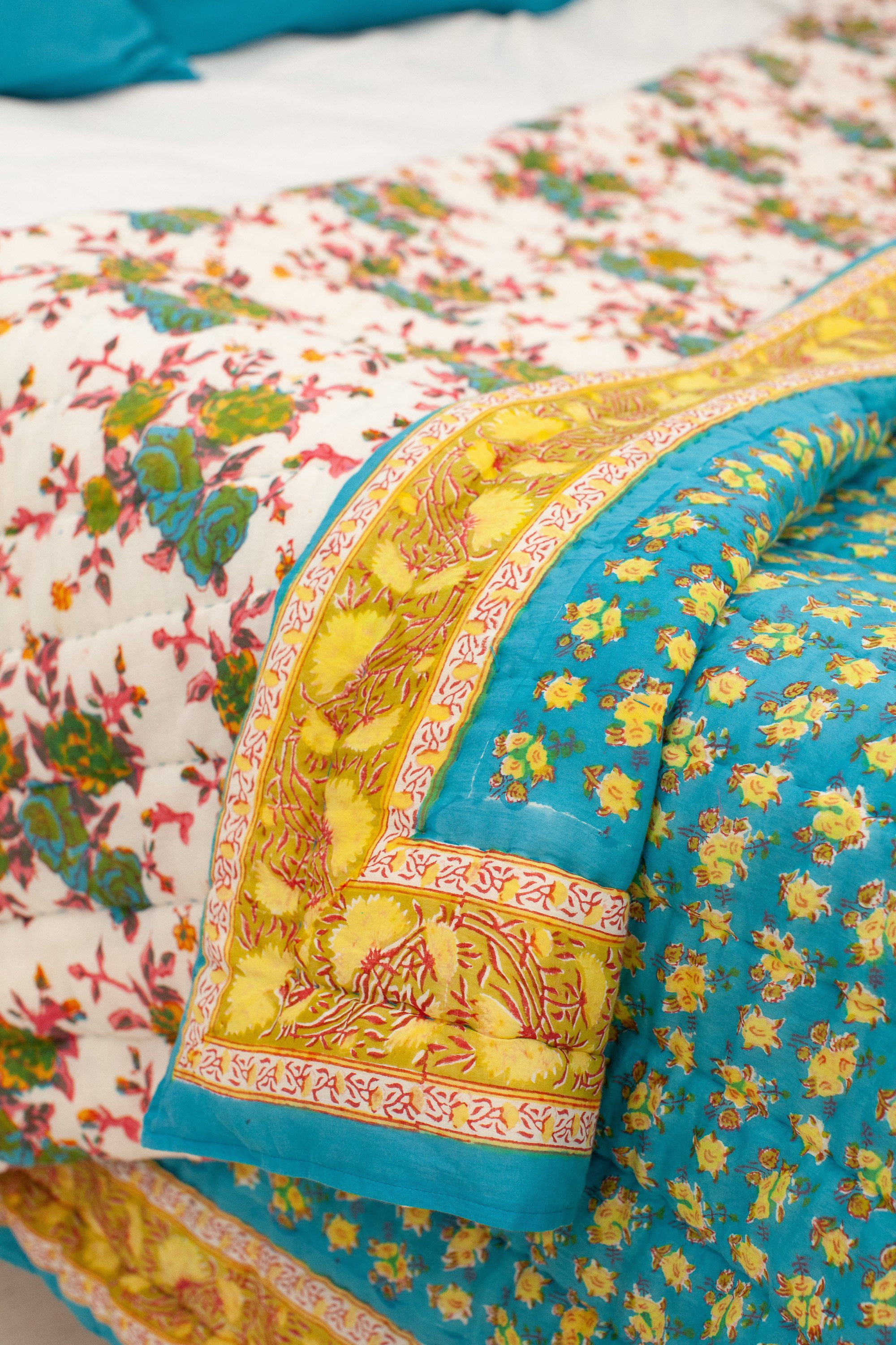 Kerry's quilts include hand-quilted cotton batting, luxe cotton and our softest hem. We love our solids layered in the bed as top sheets. So snuggly soft.